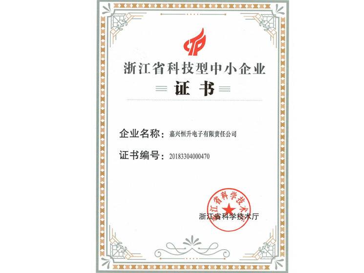 浙江省科技型中小企业证书